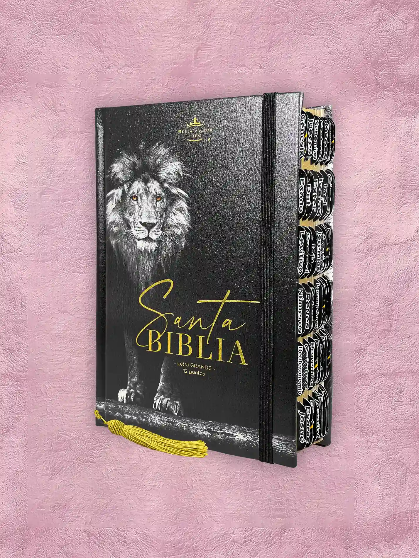 Su diseño en color negro profundo con el imponente grabado del León de Judá la convierte en un símbolo de valentía y poder espiritual.