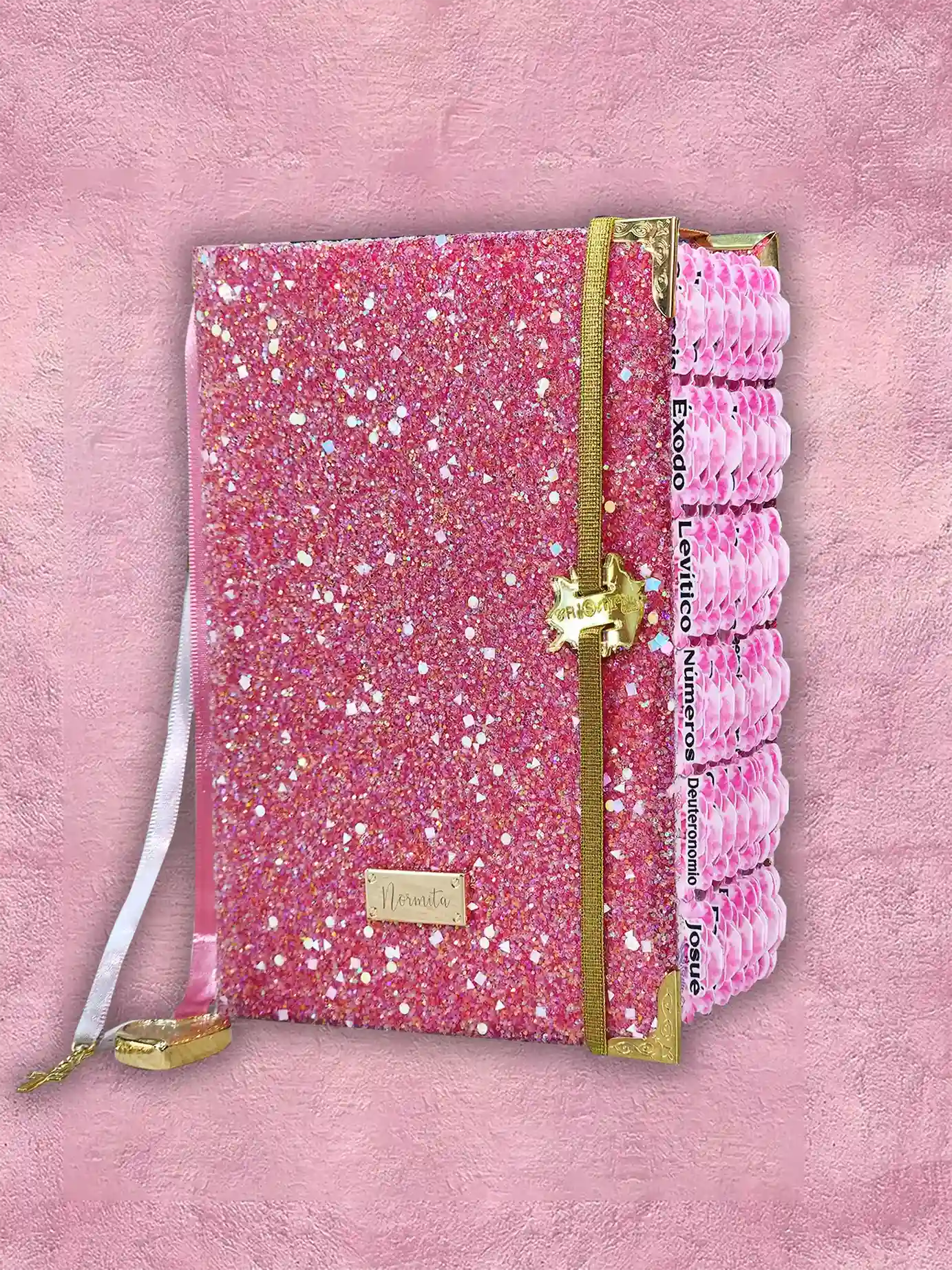 La Biblia de Pedreria es el modelo más cotizado por su hermosa cubierta de brillos que resaltan el esplendor y la elegancia de su portada.