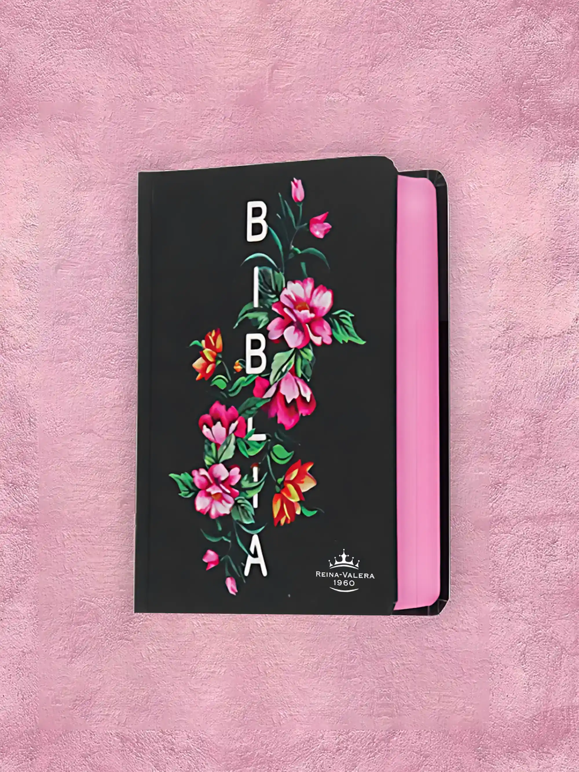 letra normal, tapa dura floreado, promesas de Dios resaltado, filo rosado.