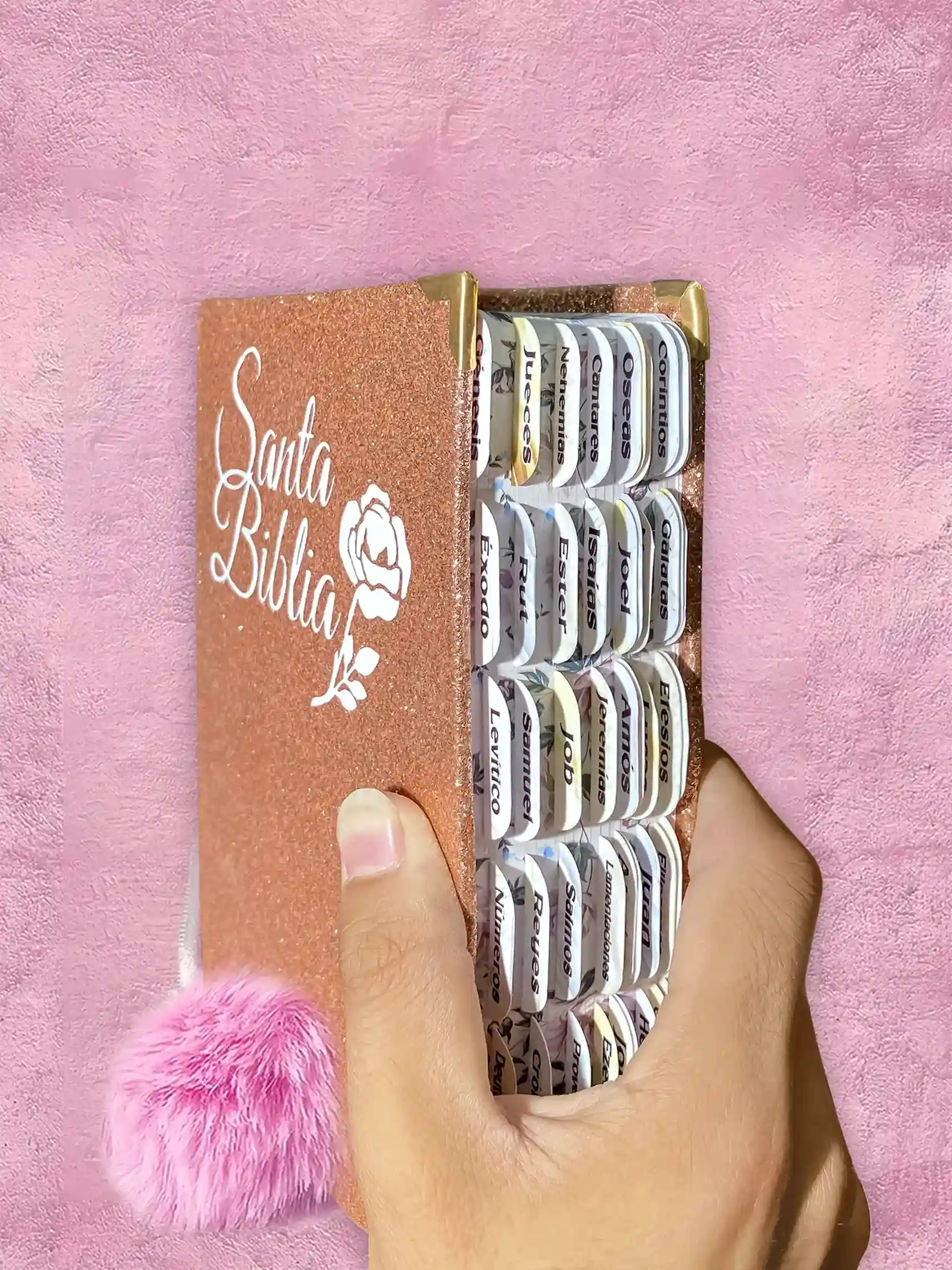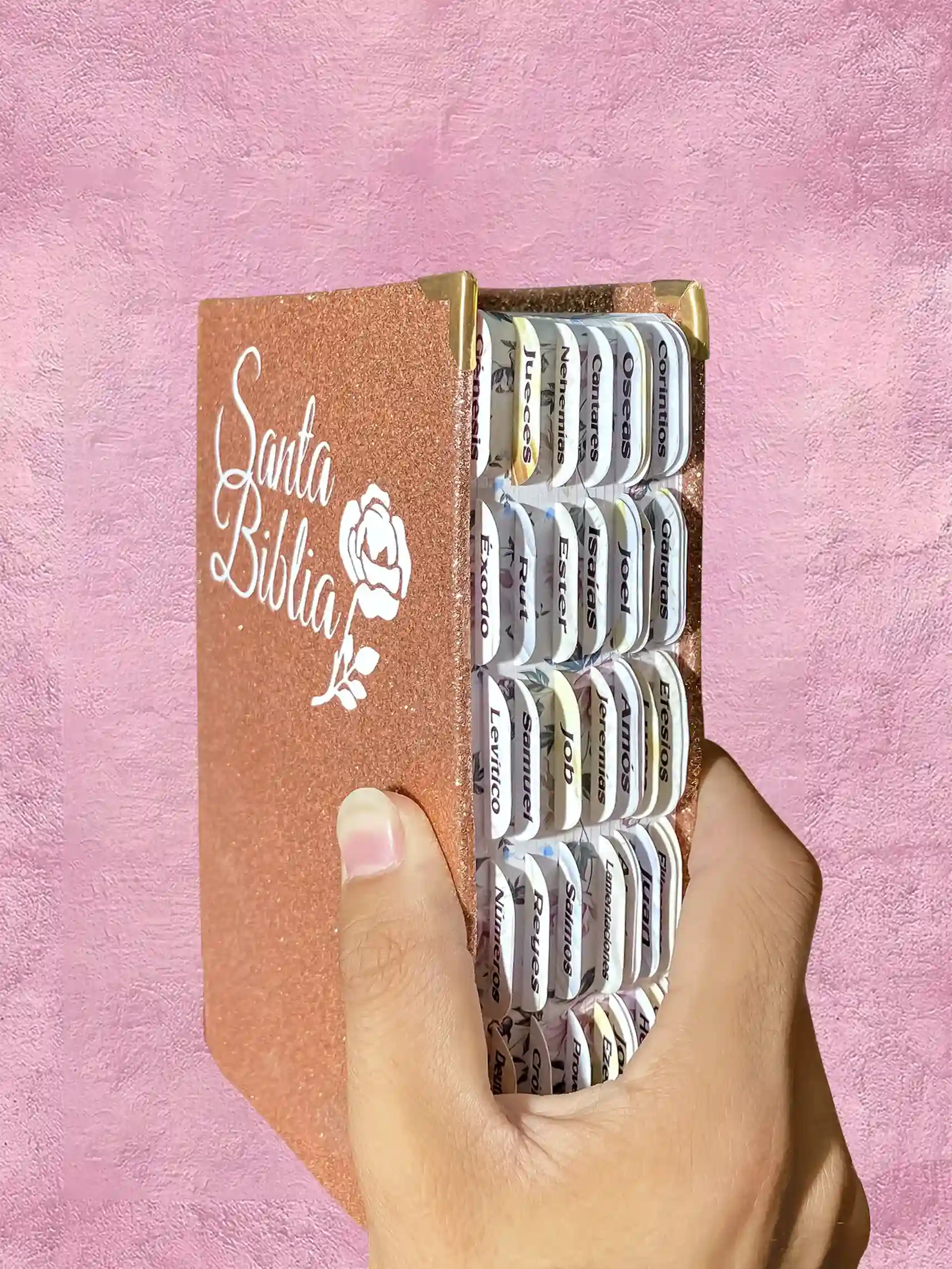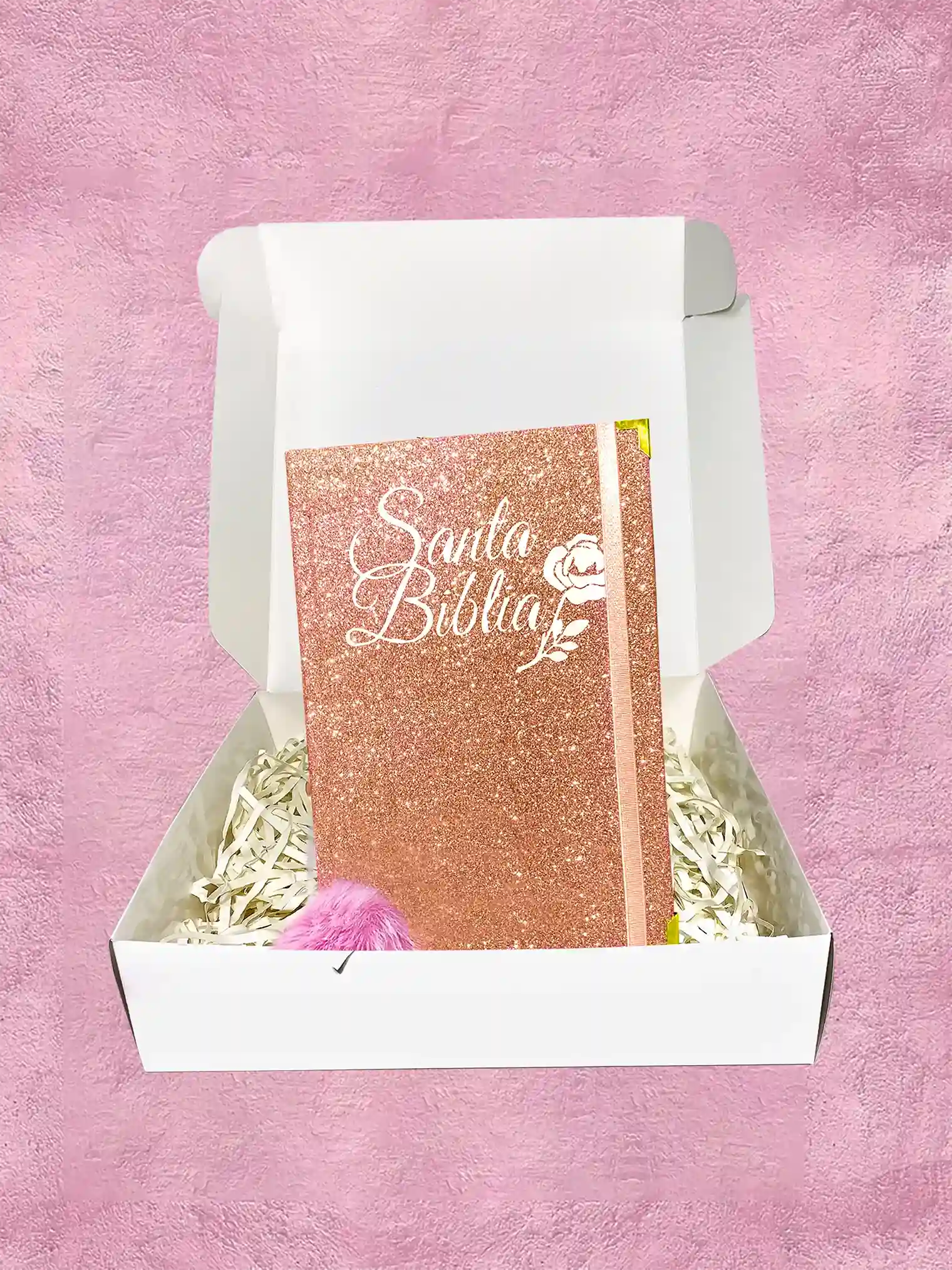 La Biblia Diamantina es un modelo muy solicitado por su hermosa cubierta de brillos que le suman esplendor y elegancia en cada momento.