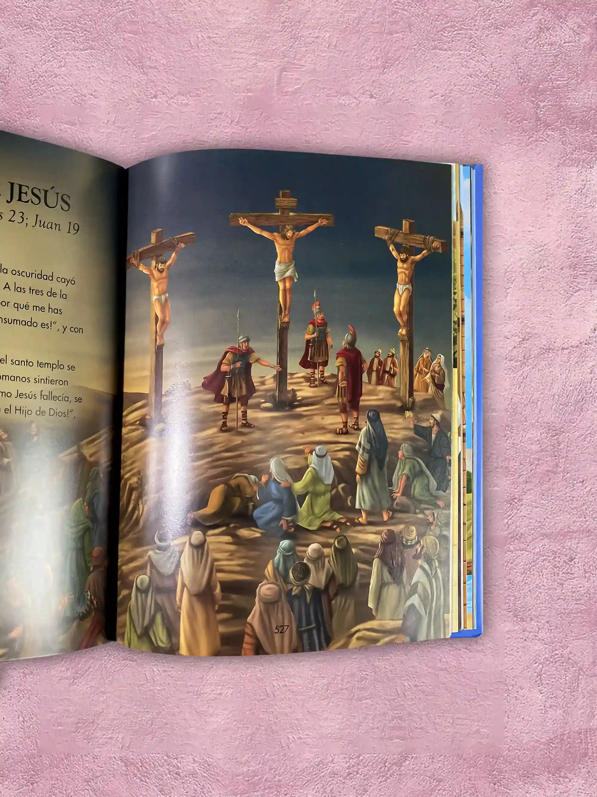 Letra grande, historia resumida de toda la biblia, ilustraciones a todo color, tapa dura.