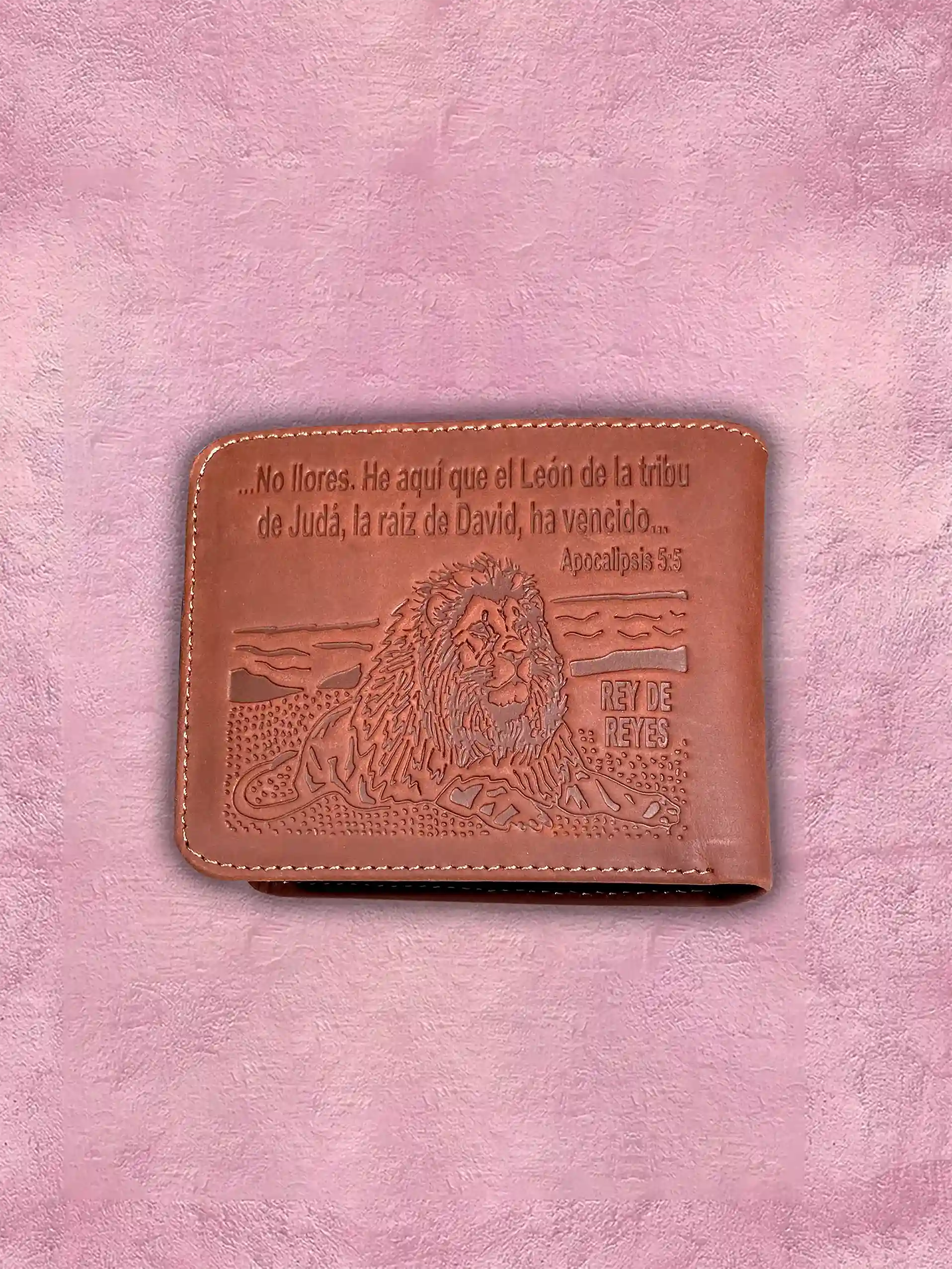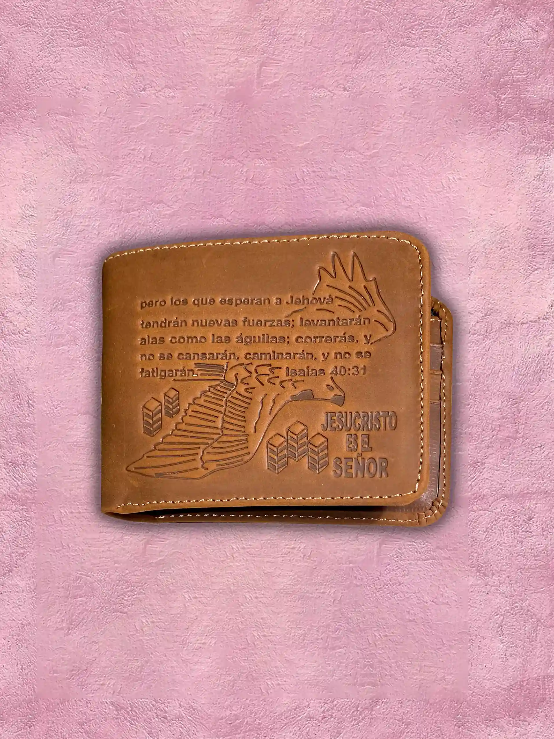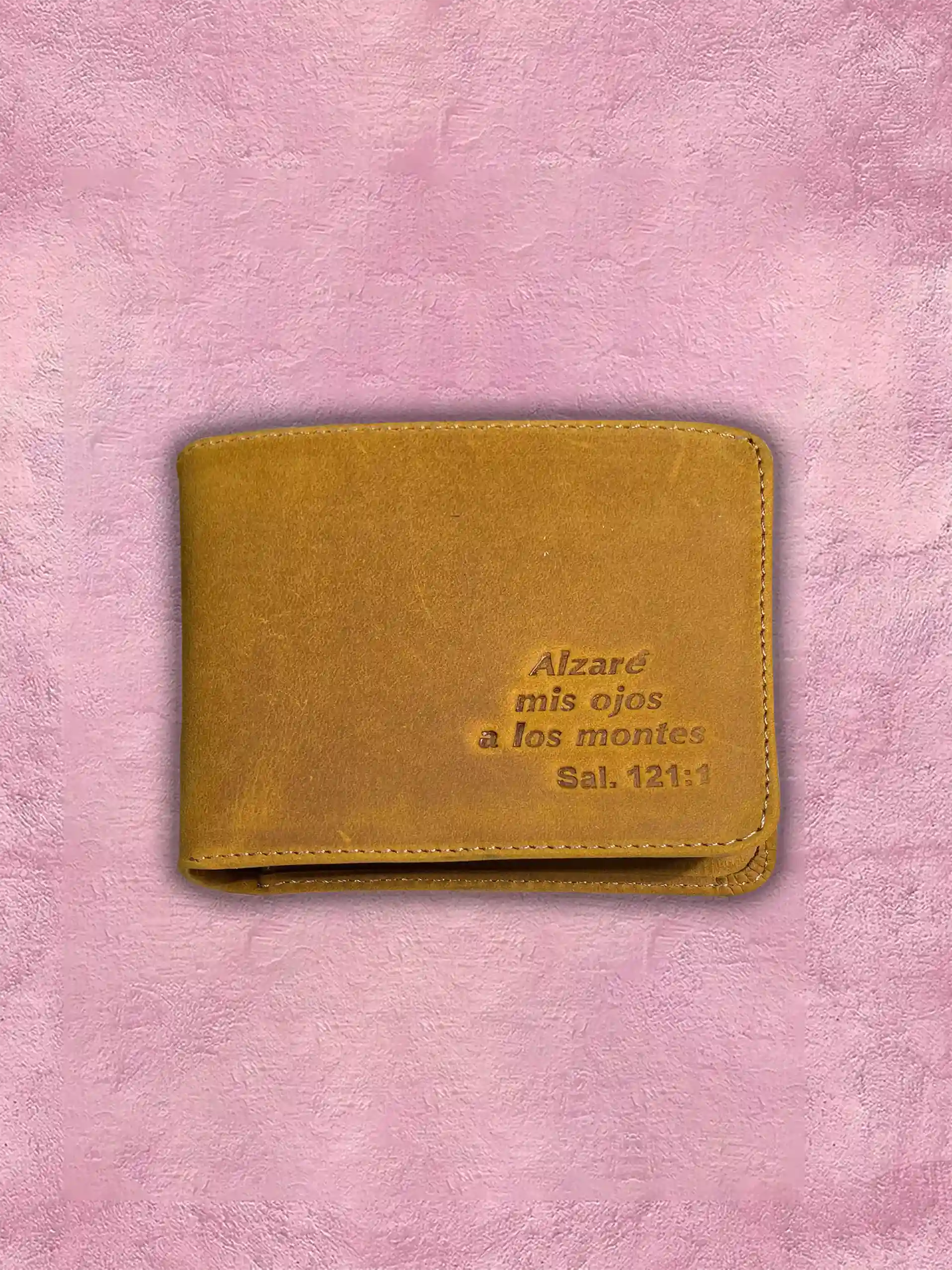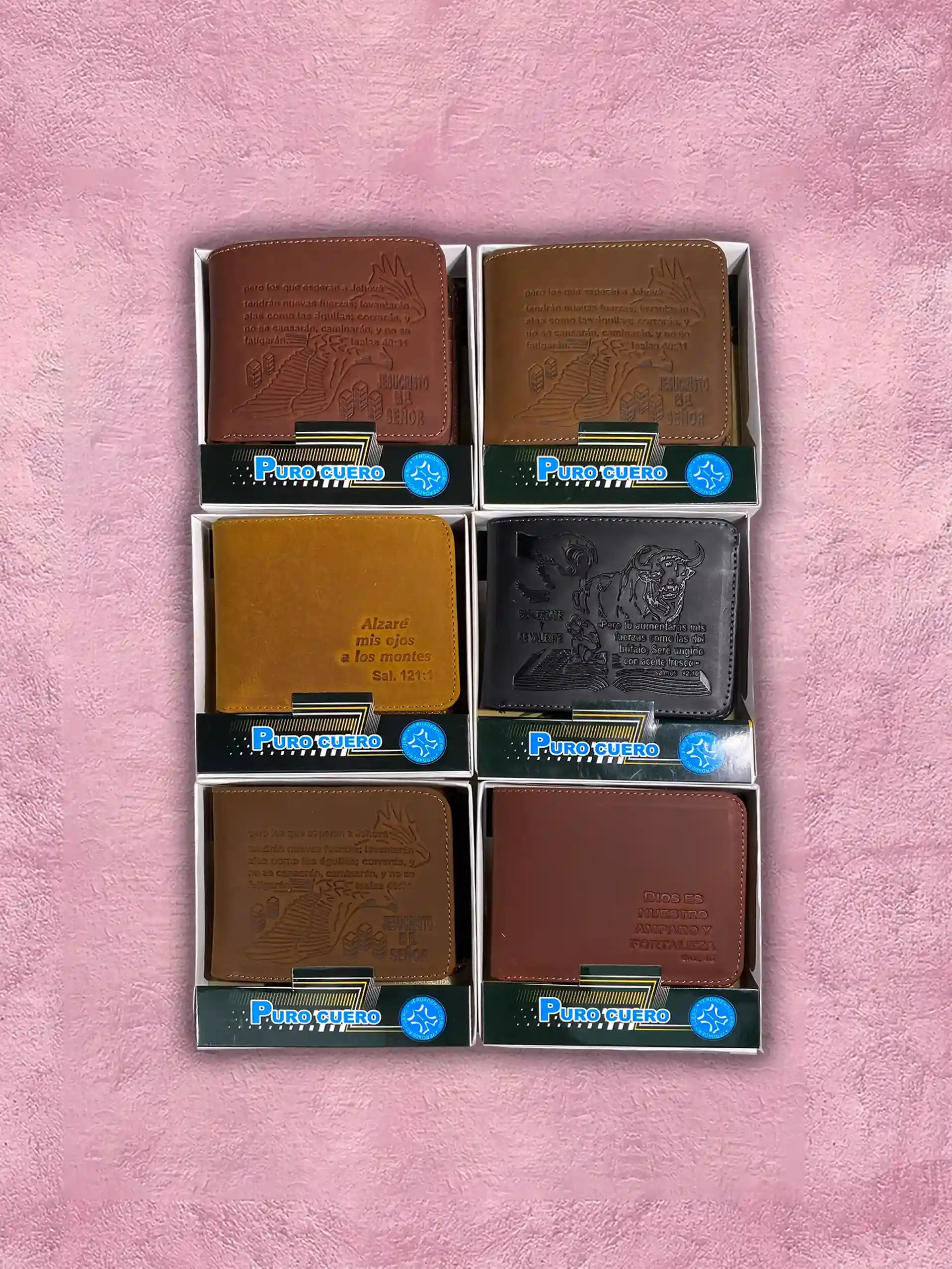 Nuestras billeteras de cuero puro combinan elegancia, durabilidad y propósito. Cada diseño incluye un mensaje cristiano grabado que inspira y acompaña cada día. Son el detalle perfecto para quienes desean llevar su fe con estilo y discreción. Un accesorio funcional, resistente y elegante en tu día a día.