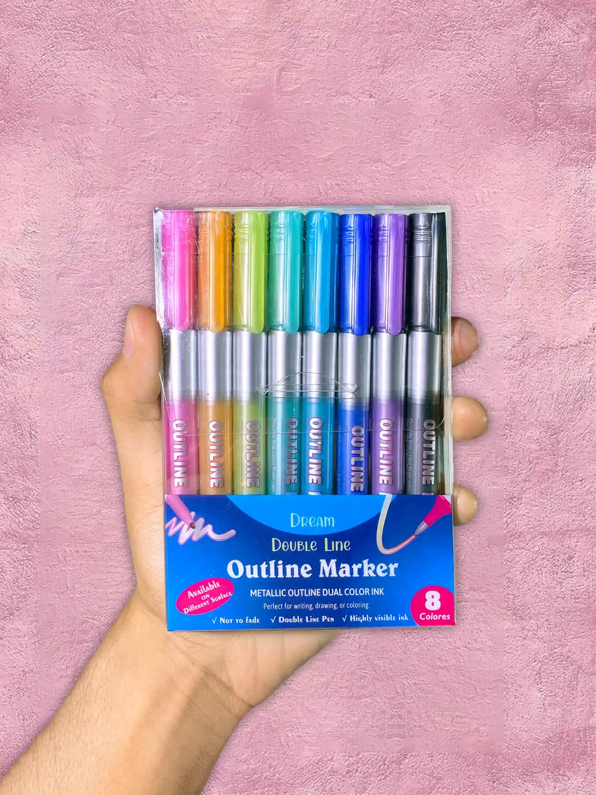 Estos increíbles rotuladores autodelineados escriben en plata metálica viva rodeada de bordes de colores.