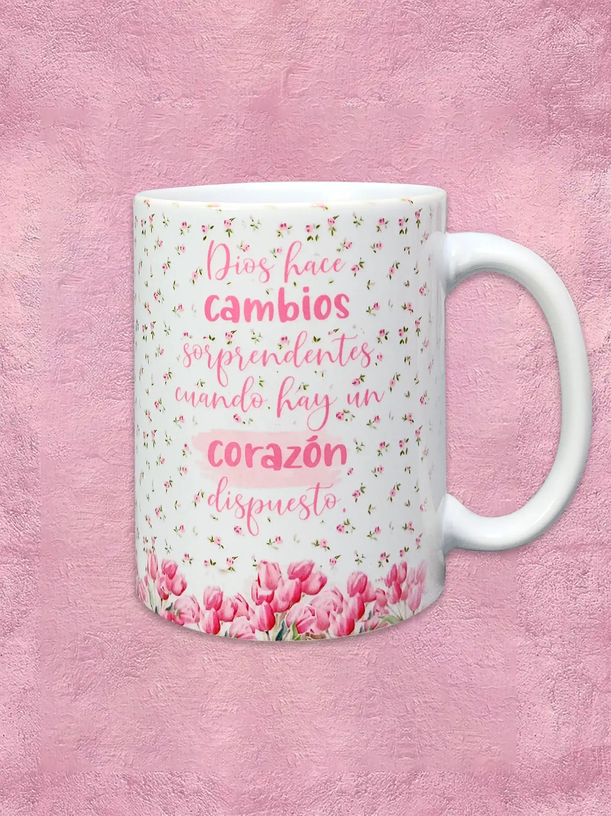 Las tazas personalizadas de 11 onzas y 9.5 cm de altura ofrecen una presentación ideal para regalos especiales y uso diario. Están disponibles en diseños cristianos, con frases inspiradoras y estilos delicados que añaden un valor especial.