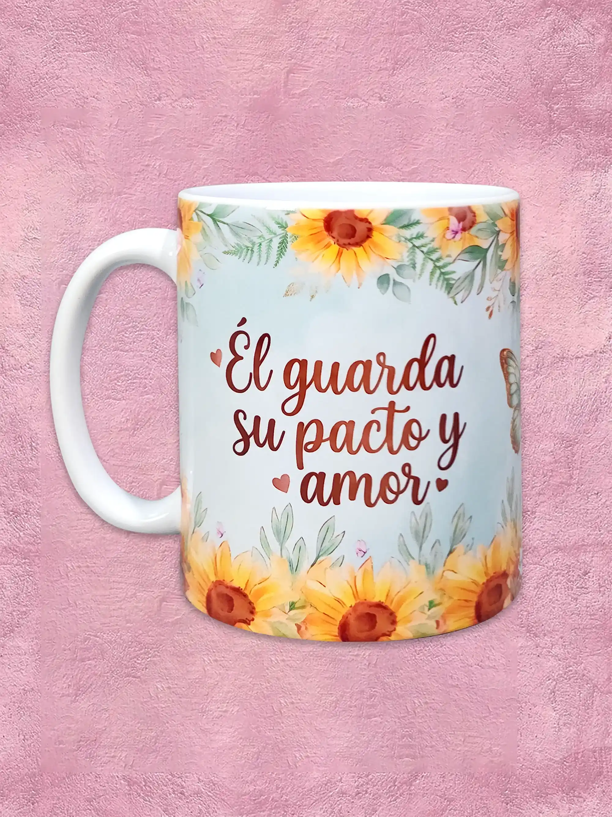 Las tazas personalizadas de 11 onzas y 9.5 cm de altura ofrecen una presentación ideal para regalos especiales y uso diario. Están disponibles en diseños cristianos, con frases inspiradoras y estilos delicados que añaden un valor especial.