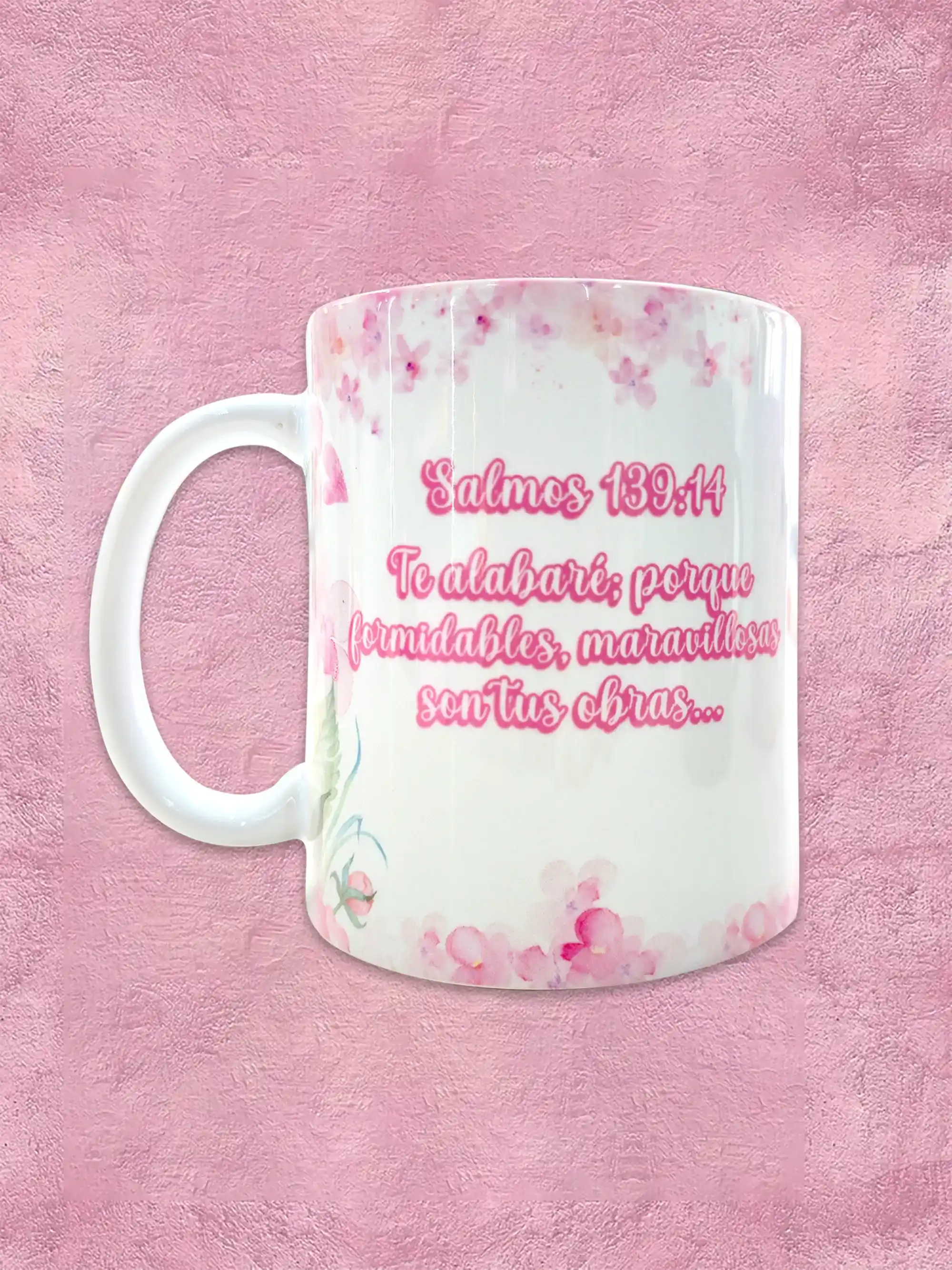 Las tazas personalizadas de 11 onzas y 9.5 cm de altura ofrecen una presentación ideal para regalos especiales y uso diario. Están disponibles en diseños cristianos, con frases inspiradoras y estilos delicados que añaden un valor especial.