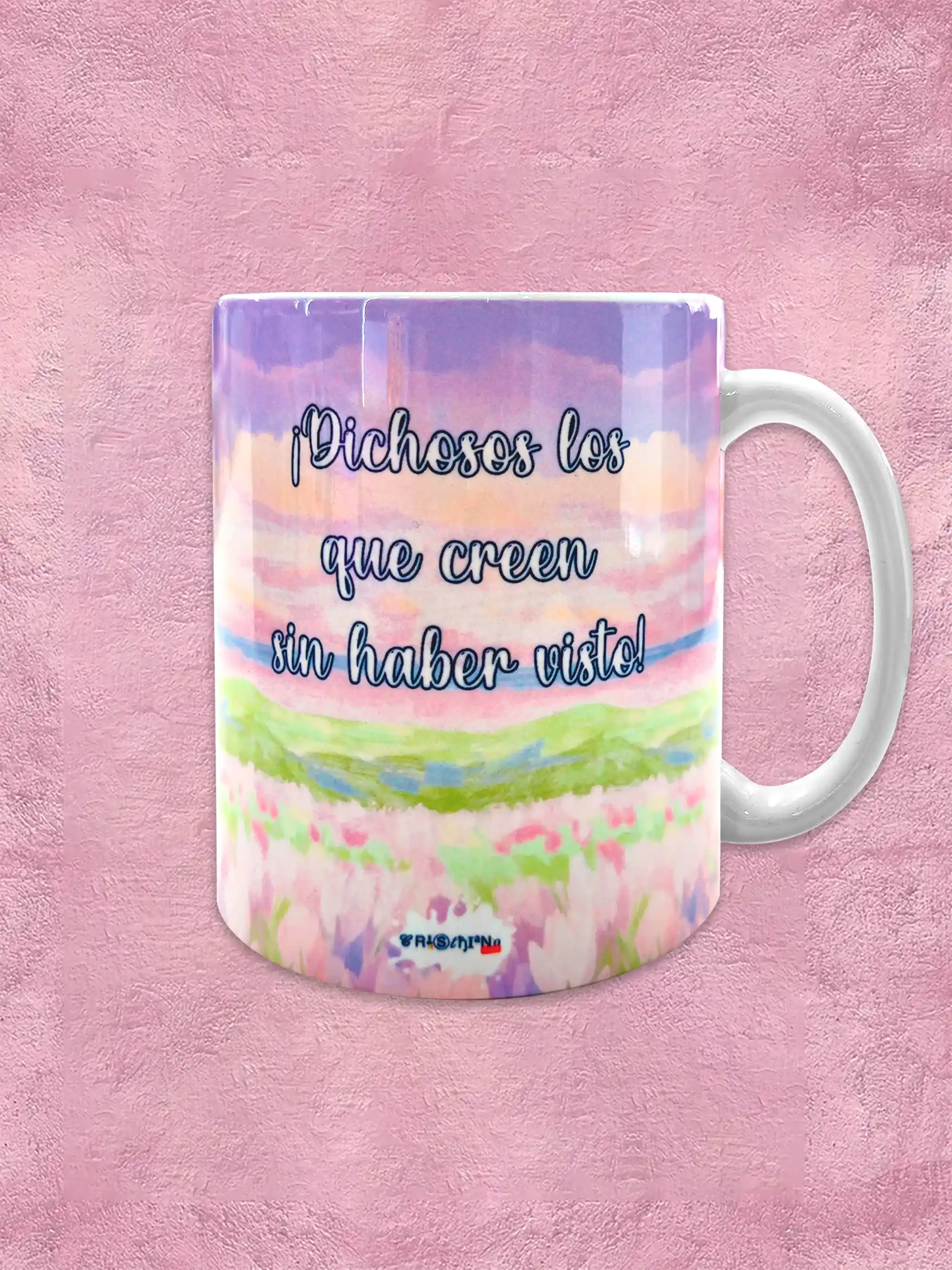 Las tazas personalizadas de 11 onzas y 9.5 cm de altura ofrecen una presentación ideal para regalos especiales y uso diario. Están disponibles en diseños cristianos, con frases inspiradoras y estilos delicados que añaden un valor especial.