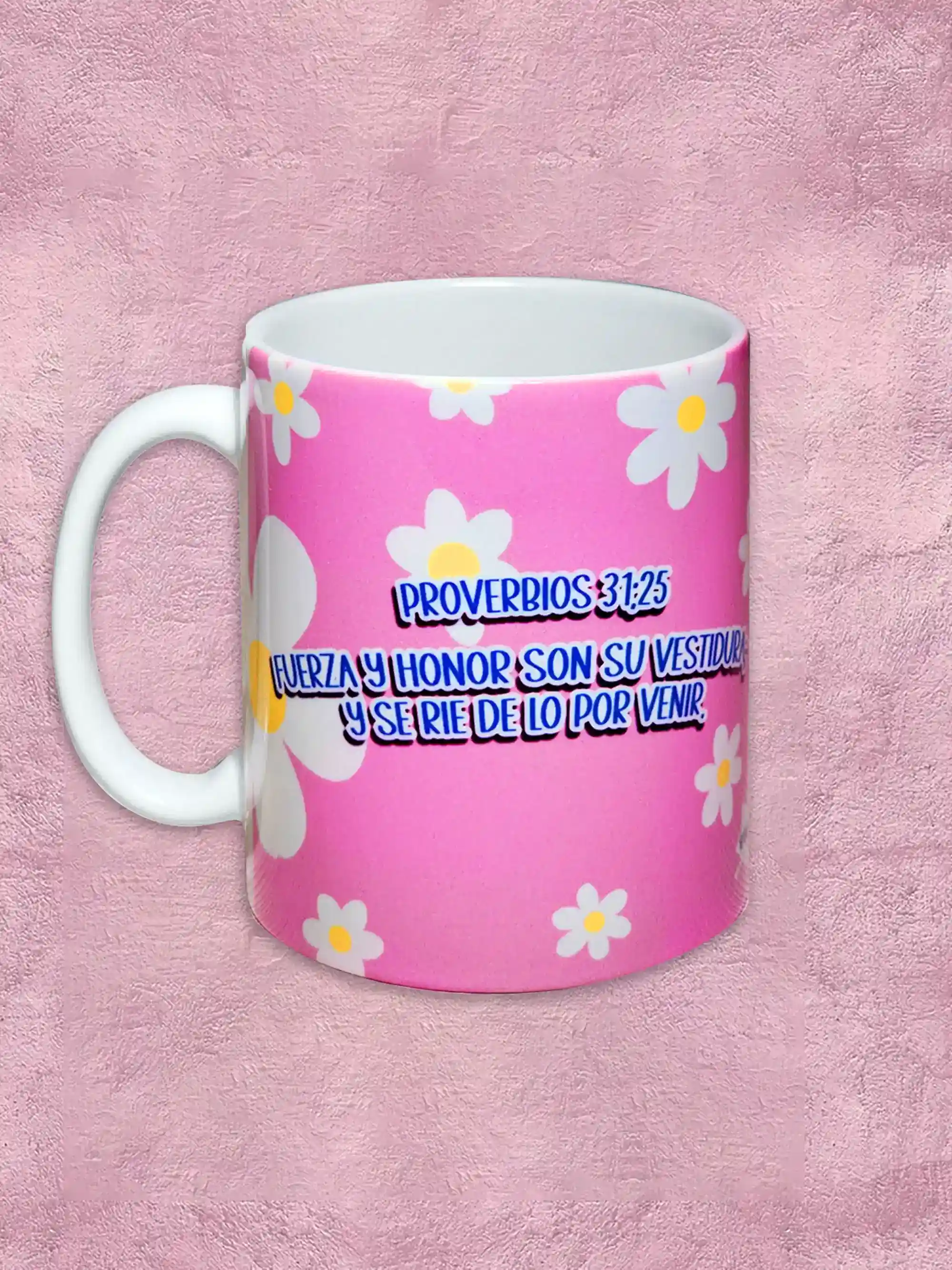 Las tazas personalizadas de 11 onzas y 9.5 cm de altura ofrecen una presentación ideal para regalos especiales y uso diario. Están disponibles en diseños cristianos, con frases inspiradoras y estilos delicados que añaden un valor especial.